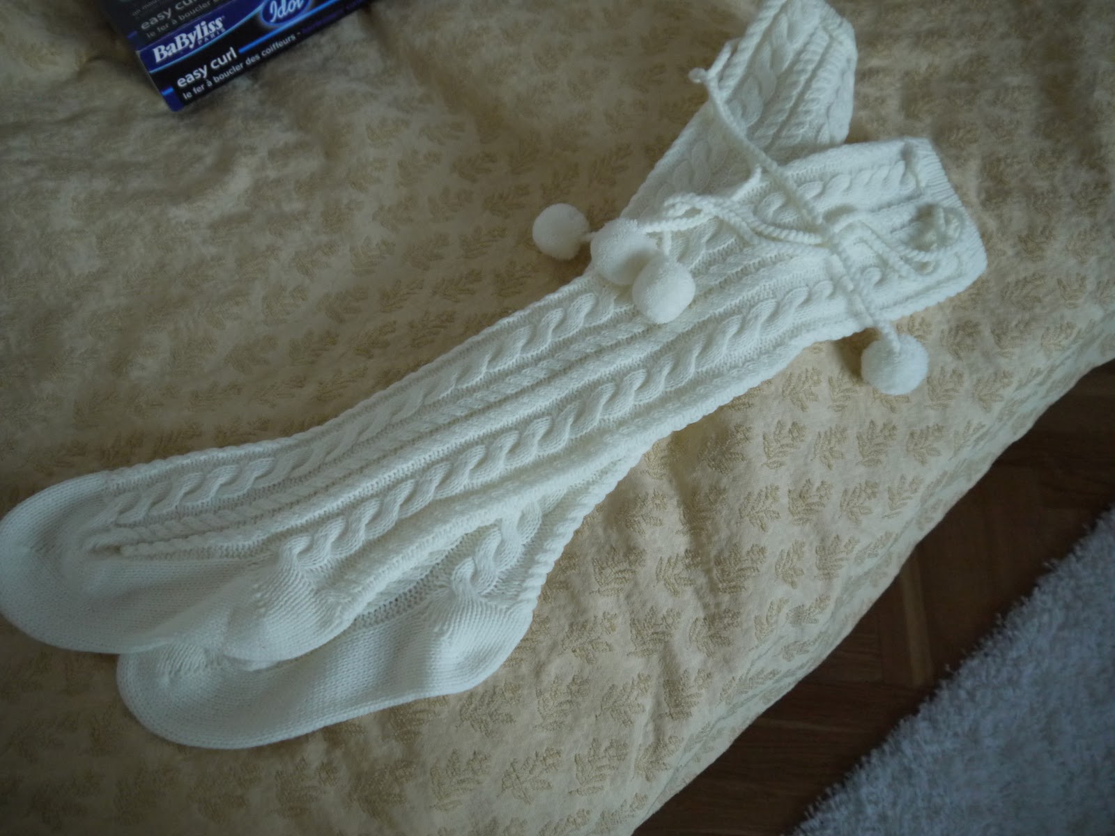 | 卡妹妹送我的過膝球球毛襪!!巧的是耶誕節前幾天我才去買一雙一模一樣黑色的,只能說真的太巧了! |