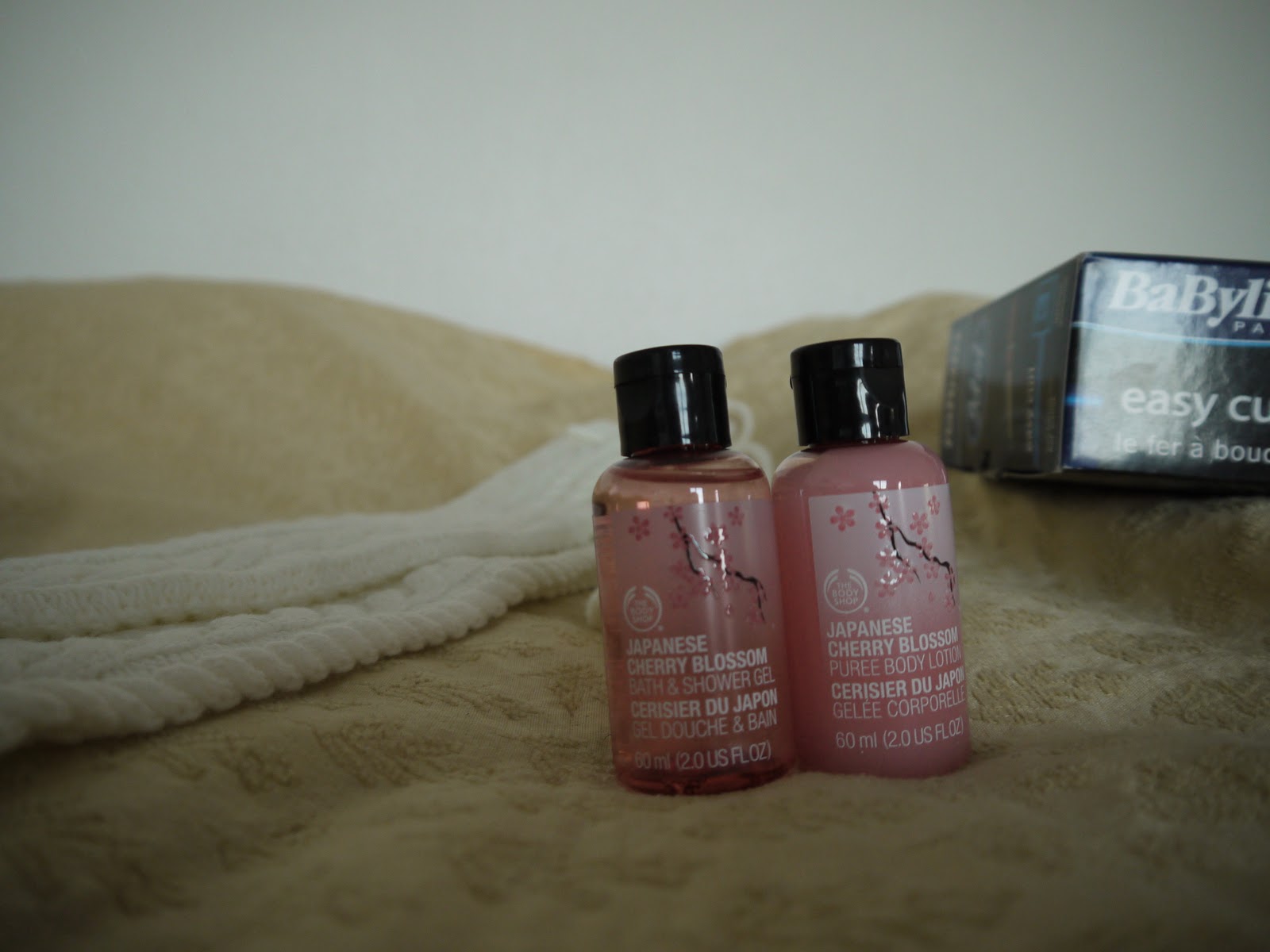 | 卡媽媽送我的THE BODY SHOP沐浴組還有一個沐浴球,我的是日本櫻花口味,卡妹妹是玫瑰口味! |