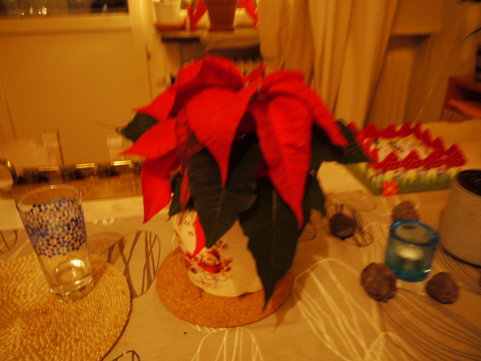 | 卡媽媽送的聖誕紅,連盆子都有耶誕老公公 |