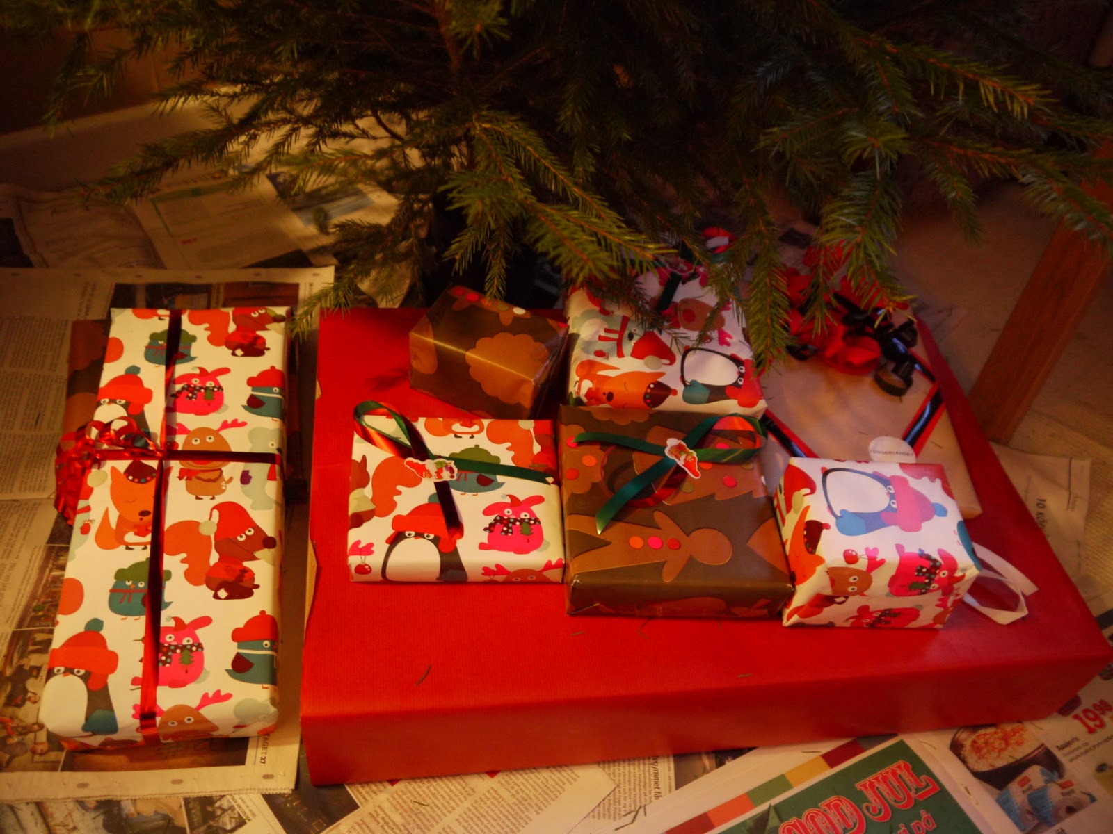 今年的主題就是,每人約100克朗(台幣四百多)的預算,由於卡家人在十一月去紐約玩了一趟後,大家都呈現經濟拮据的狀態,所以卡媽媽很貼心的定下這個規則,可是卻難倒了我,因為100克朗能買的東西真的很少,我又是和卡先生一起合送,很怕失了面子又失了裡子,結果事實證明我真的擔心太多了,顯然大家都很喜歡我們的禮物,給卡爸爸的是無印良品的積木(紐約版),雖然超出了一點預算,可是希望卡爸爸就算在瑞典也還可以延續他的紐約夢~~(結果這邊的無印良品貴到讓人吐血,早知道就叫劉姐姐從日本寄過來!),給卡媽媽的是我早在去英國的時候就買的瑰柏翠護手霜組合,卡媽媽是保養狂和歐舒丹大戶(和我一樣ㄎㄎㄎ),所以去年送過歐舒丹的護手護腳霜後,今年換個牌子送。卡妹妹我們送的是一本很可愛的書,裡頭有各式各樣好玩的押韻詩,很適合做廣告創意的卡妹妹!我送給卡先生的是一頂毛線帽,結果耶誕節過後發現路上超多人帶同一頂,還曾經在同一條街上目睹同款三色同時出現哈哈,不過卡先生很喜歡!!